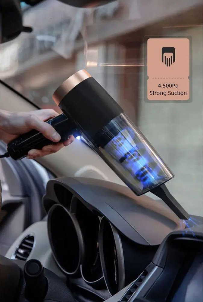 Nasz wodoodporny i antystatyczny przenośny odkurzacz samochodowy wyczyści wszelkie mokre lub suche zanieczyszczenia, nawet ciecz, sadzę lub sierść zwierząt domowych.